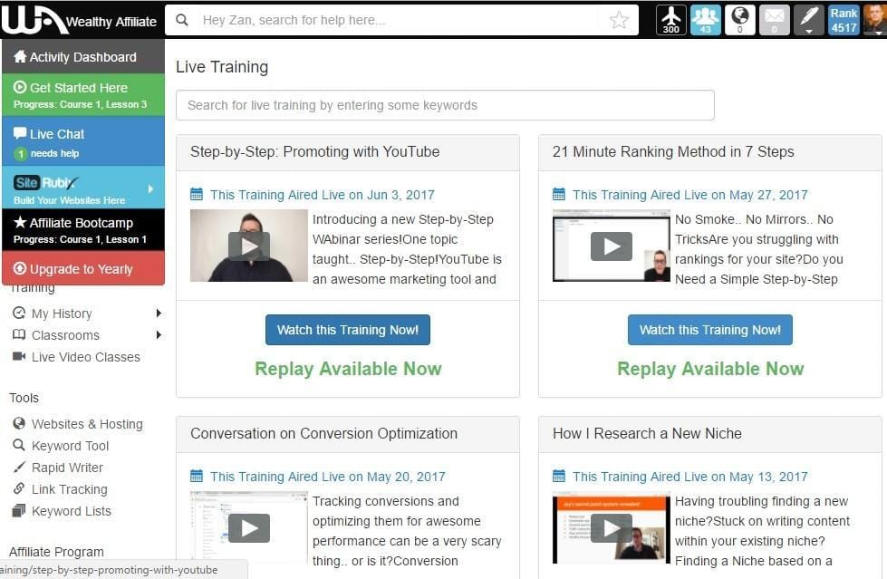 Izgled izobraževanj na Wealthy Affiliate: