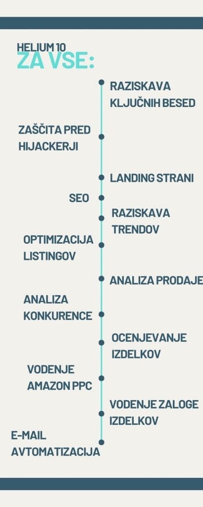 Poleg programov za določitev ključnih besed, omogoča Helium 10 s svojimi orodji še mnogo več: