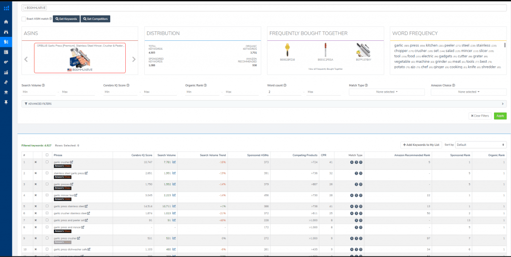Po mnenju uporabnikov je to najbolj uporaben program, ki vam omogoči pregled ključnih besed za izbrani izdelek. Deluje po principu reverse ASIN lookup, to pomeni, da vam najde ključne besede, ki so relevantne konkurenčnemu produktu.