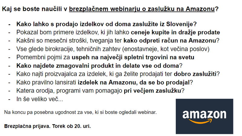 Brezplačni webinar: Kako zaslužiti na največji spletni trgovini na svetu (Amazon)?